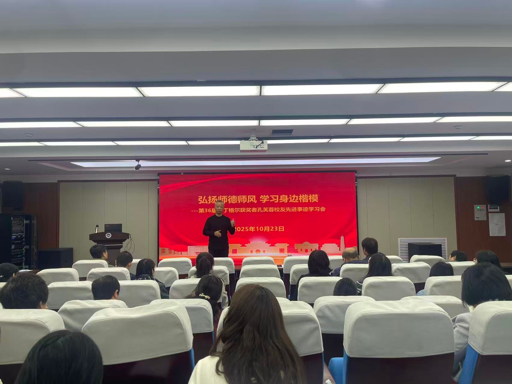 为进一步推动师德师风建设走深走实,10月23日,学院在二楼报告厅举办以“弘扬师德师风 学习身边楷模”为主题的师德师风专题学习会,聚焦第36届南丁格尔奖获得者、学院杰出校友孔芙蓉的先进事迹,将榜样精神与护理教育使命深度融合。全体教职工参会,会议由副院长杜保明主持。