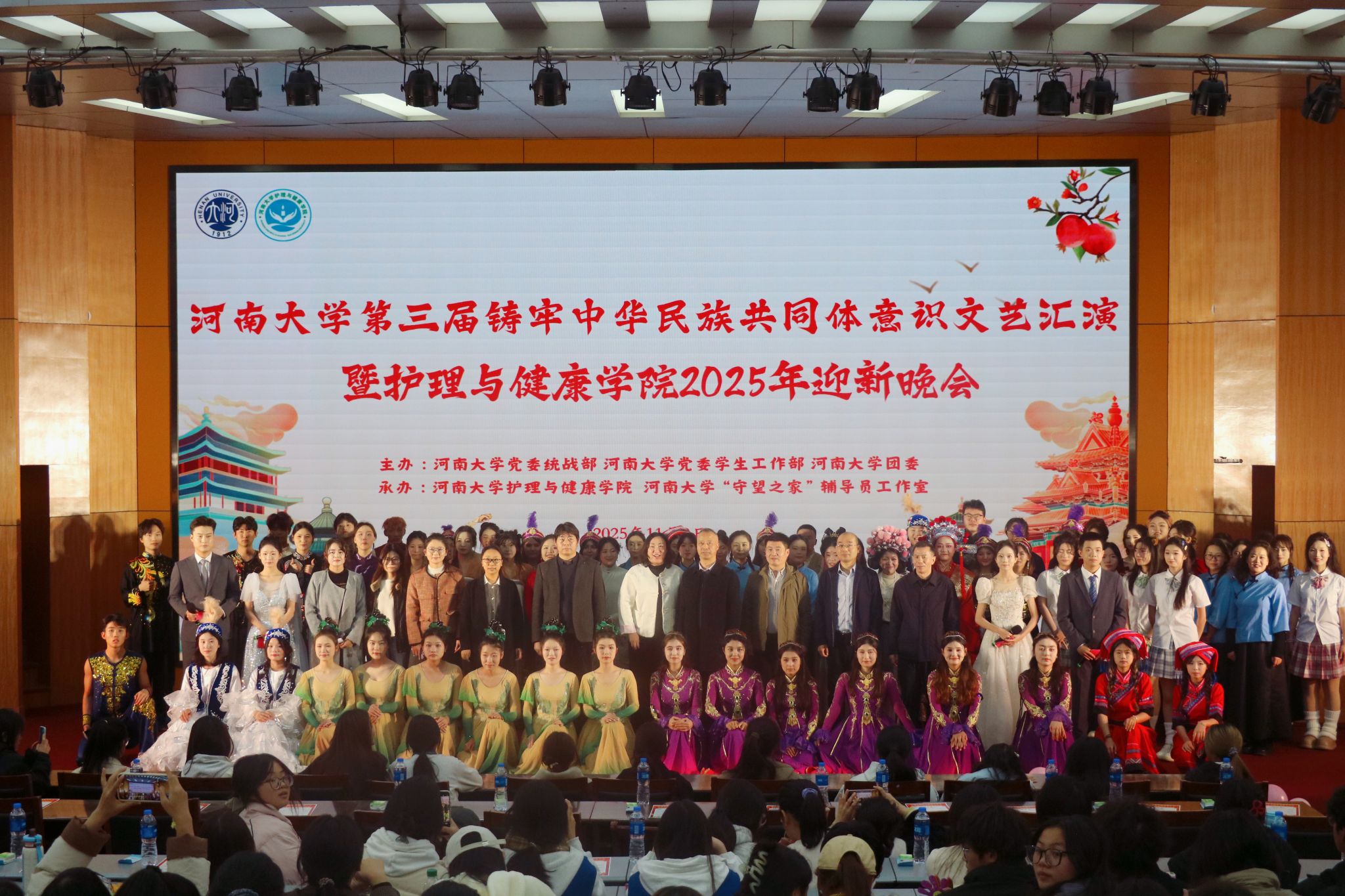 为深入学习贯彻习近平总书记关于加强和改进民族工作的重要思想,搭建有形有感有效的民族团结进步教育平台,进一步铸牢中华民族共同体意识,11月9日晚,我校第三届铸牢中华民族共同体意识文艺汇演暨护理与健康学院2025年迎新晚会在金明校区计算机大楼二楼报告厅举行。校党委学生工作部、校团委、医学院有关负责人,“守望之家”辅导员工作室各建设单位代表,护理与健康学院全体领导班子成员、教师代表,2025级全体本科生、研究生,以及其他年级的学生代表参加晚会。