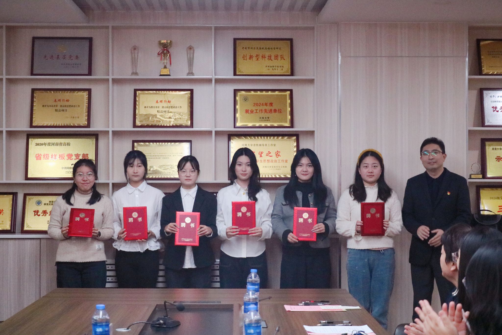 曹堃为本年度“石榴班”6位学业辅导员颁发聘书。