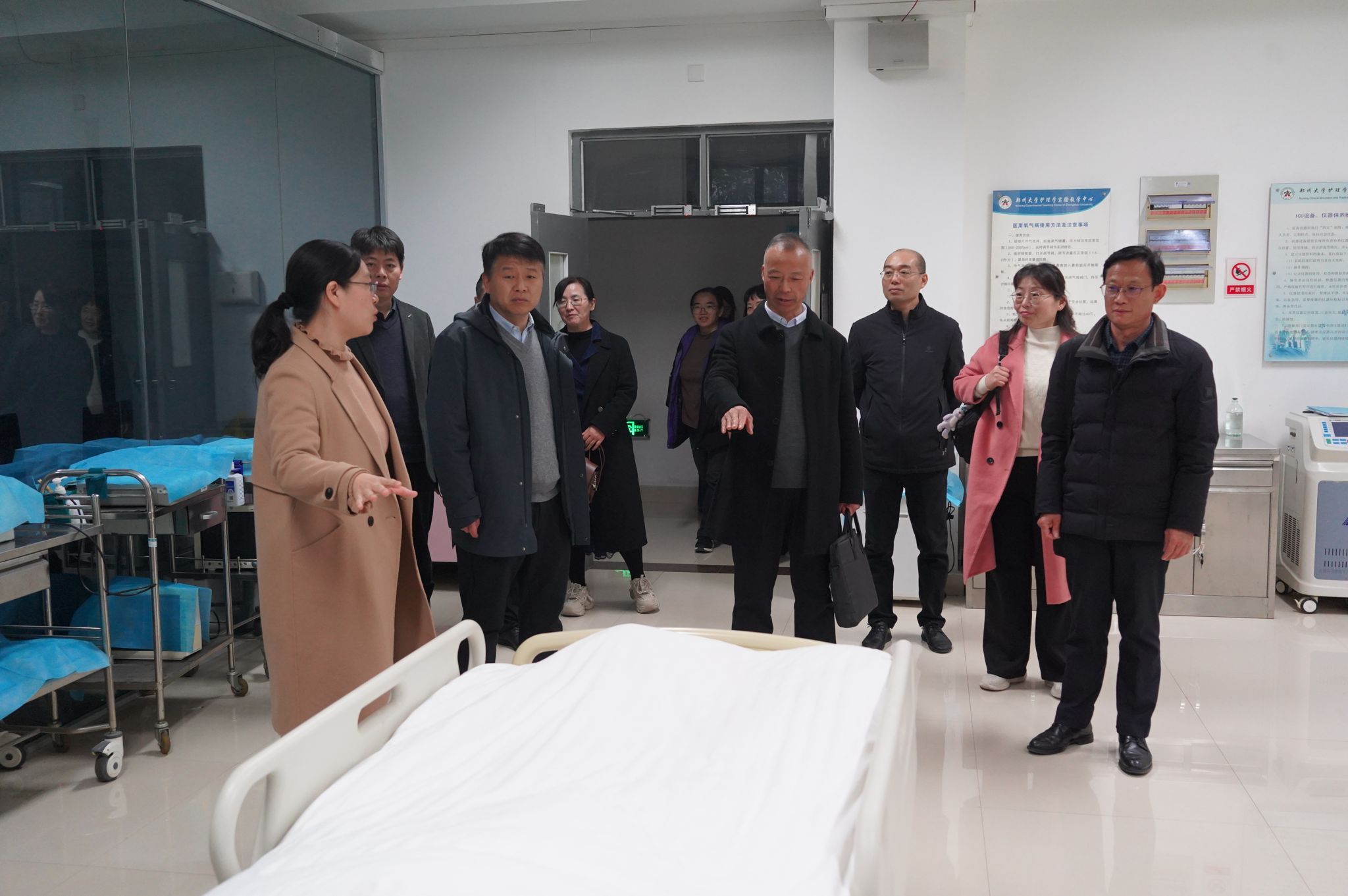 座谈结束后,谢纳泽一行在刘鑫等的陪同下参观了郑州大学护理与健康学院实验中心,实地考察了学院的教学科研平台建设情况。郑州大学护理与健康学院实验中心主任马玲对设施功能、课程融合应用、开放管理机制等进行了现场讲解与演示。双方就实验教学资源共享、实践教学协同发展等议题进一步交换了意见。