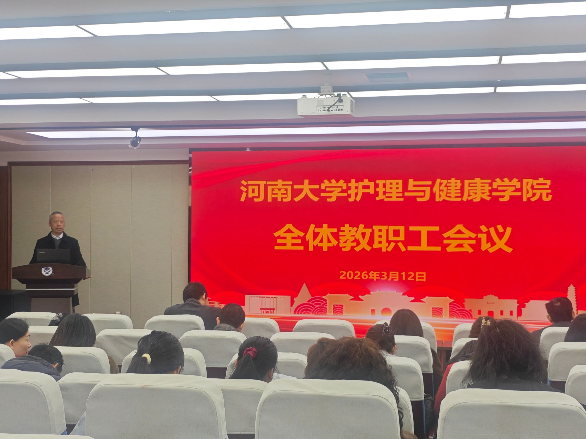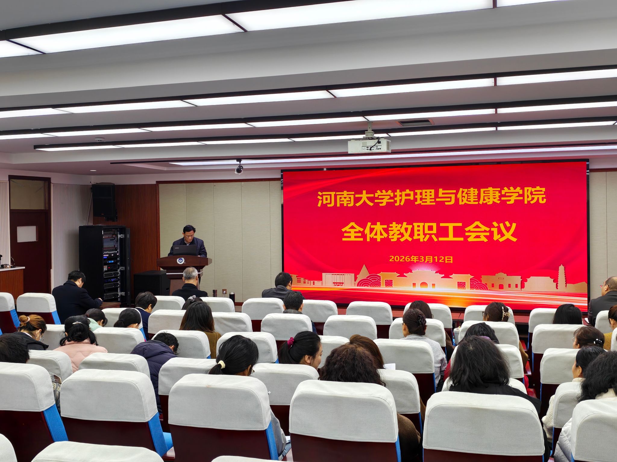 3月12日下午,我院在院二楼报告厅召开全体教职工会议,传达学校有关会议精神,安排学院2026年重点工作,激励全体教职工勇担使命、奋勇争先。会议由院党委书记谢纳泽主持。