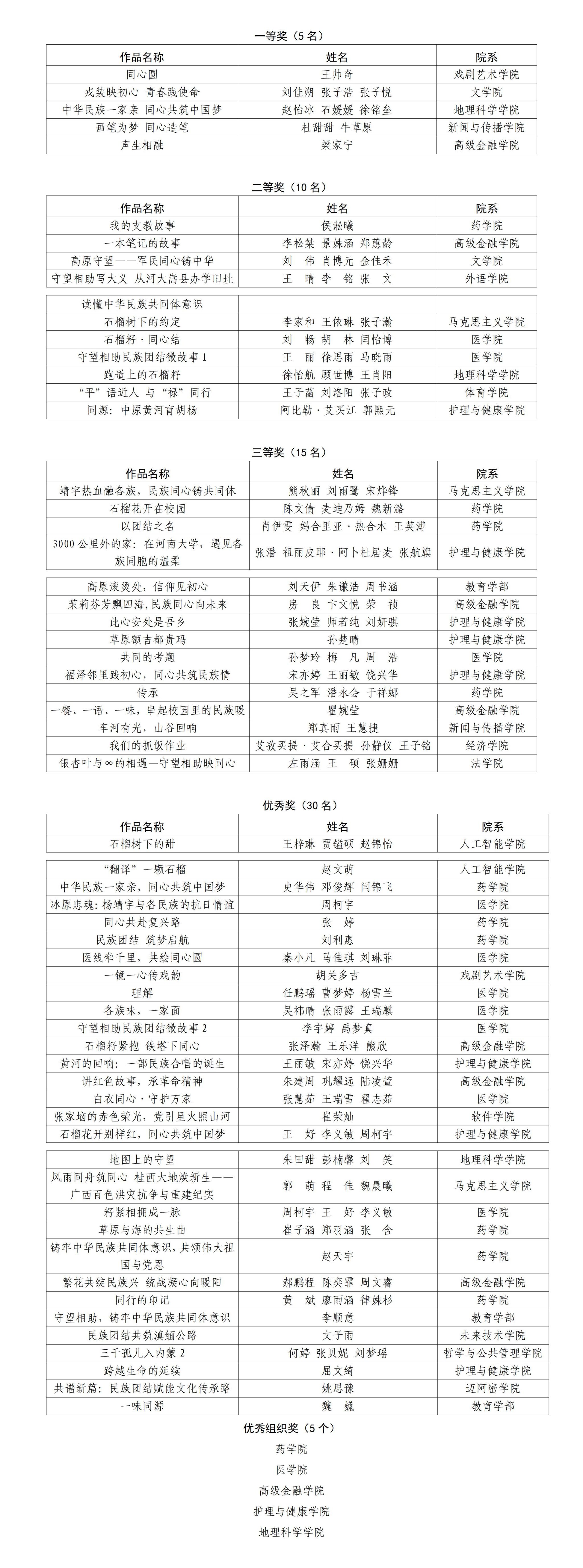 为深入学习贯彻习近平总书记关于加强和改进民族工作的重要思想,扎实推进铸牢中华民族共同体意识教育,生动展现校园各民族师生守望相助、交融共乐的鲜活图景,我校举办的“守望相助”民族团结微故事竞赛已圆满结束。经评审团队严格评选,现将获奖名单公示如下: