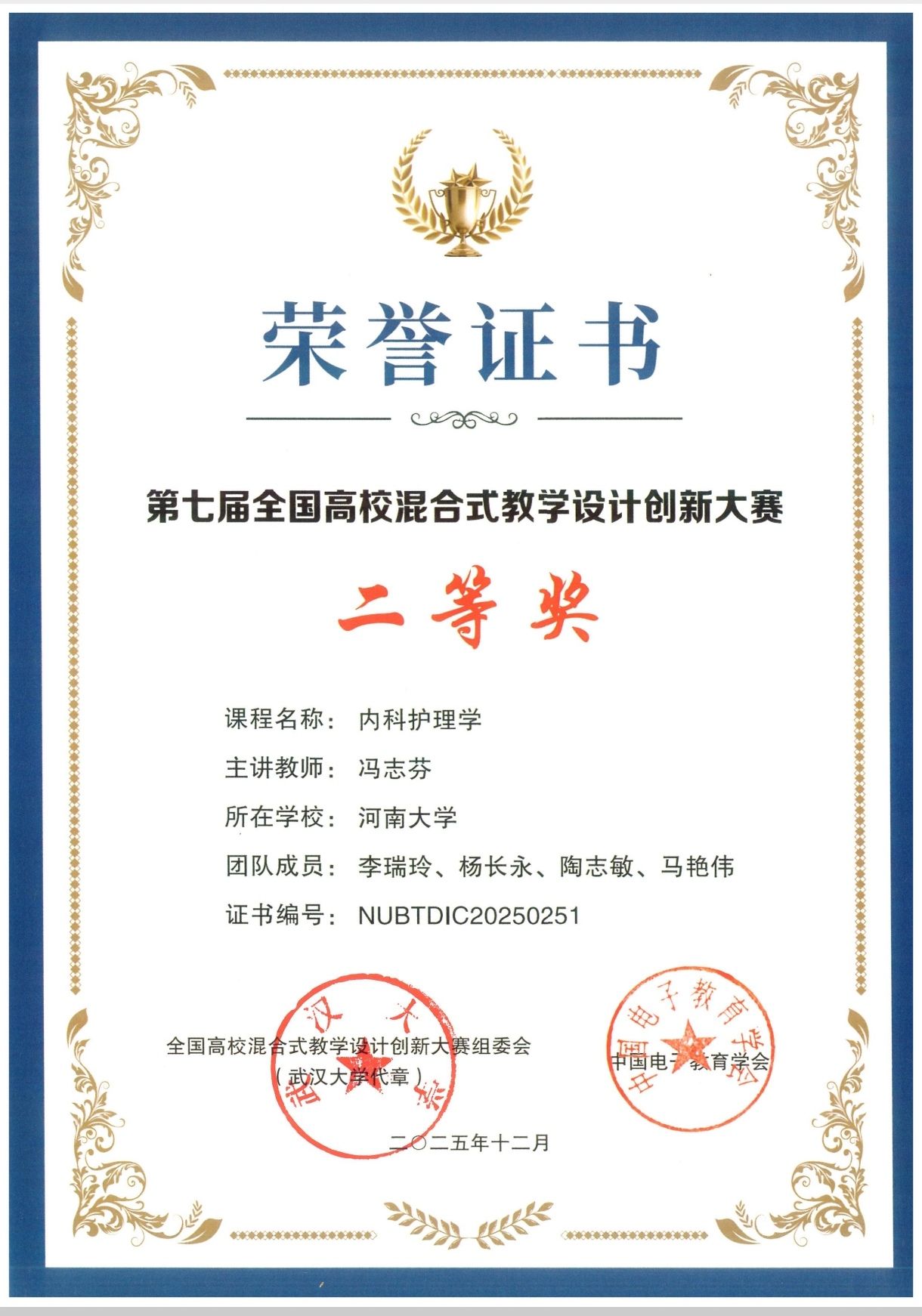 祝贺我院冯志芬老师荣获第七届全国高校混合式教学设计创新大赛二等奖!