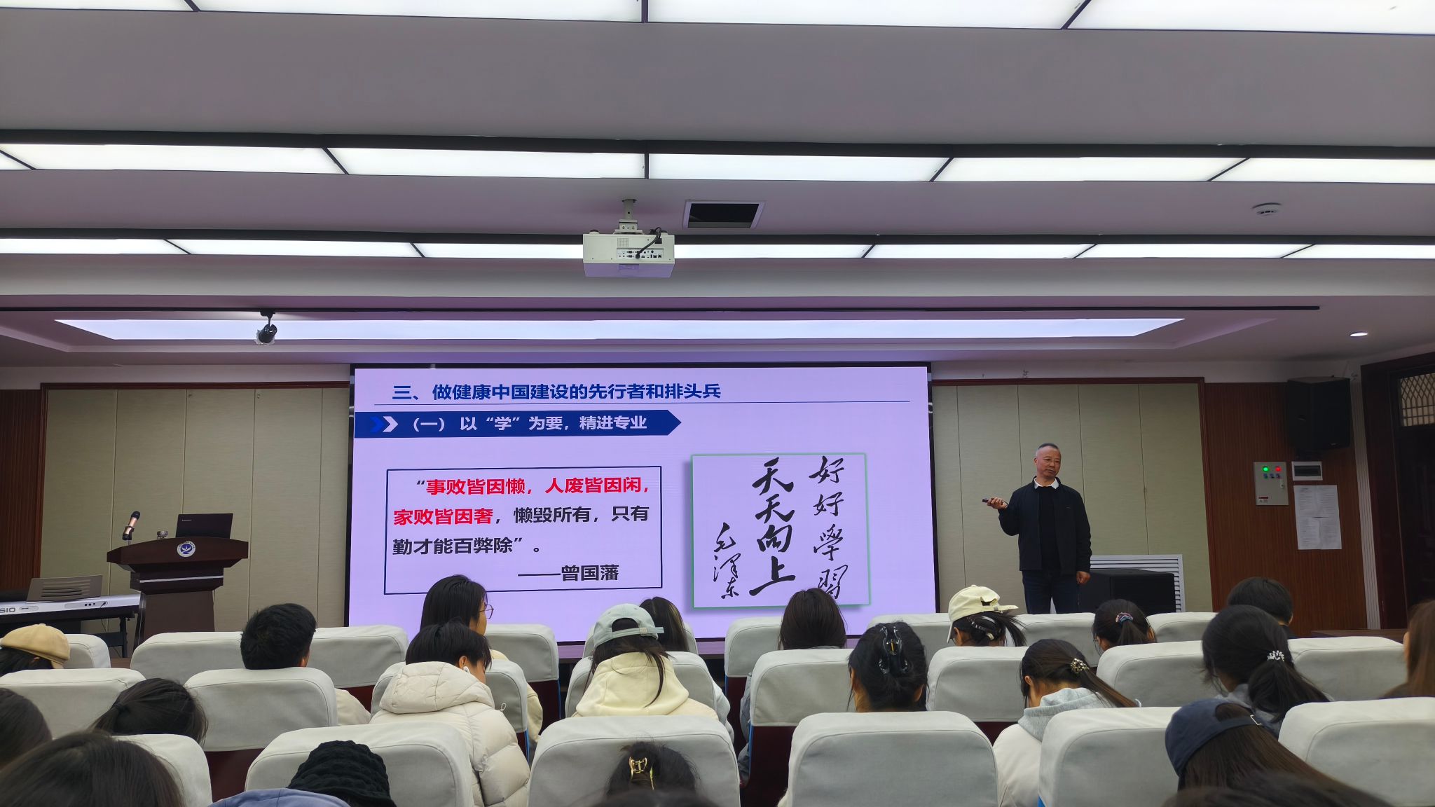 他结合“十五五”时期经济社会发展“稳中求进”工作总基调,鼓励青年成长与国家发展同频共振,唯有脚踏实地、稳步前行,方能在时代浪潮中站稳脚跟。在解读“十五五”时期经济社会发展必须遵循的原则时,他表示,“专业发展需紧扣时代脉搏,方能行稳致远”,从2015年“互联网+”热潮到如今“人工智能+”的蓬勃兴起,他从行业变革的速度与力量中明晰学院工作的着力点,加大投入培育智慧课程,推动人工智能与护理专业深度融合。同时,他还围绕“十五五”时期经济社会发展的主要目标,结合青年学子的成长成才,解读国家发展蓝图与个人理想追求的内在联系。