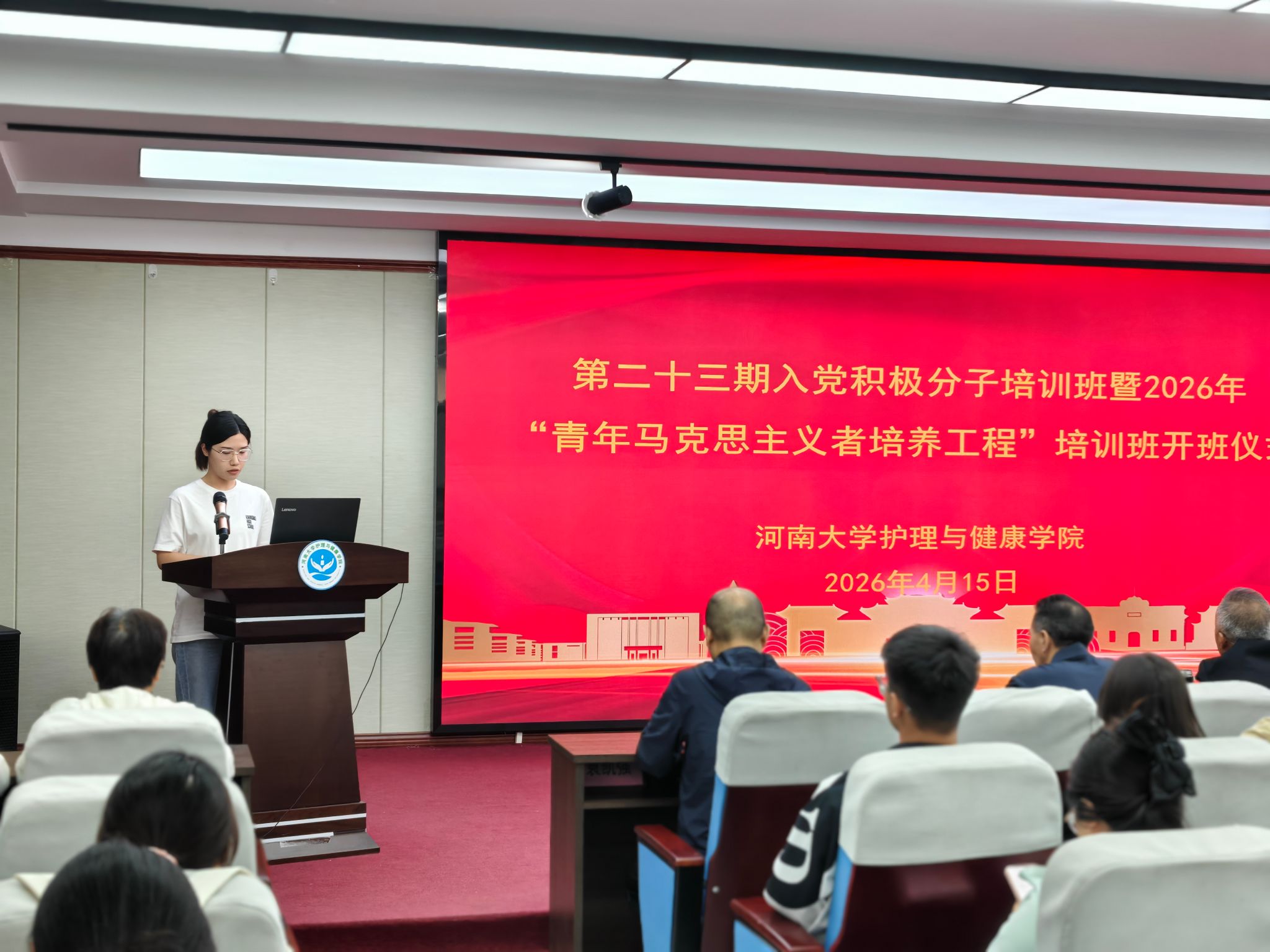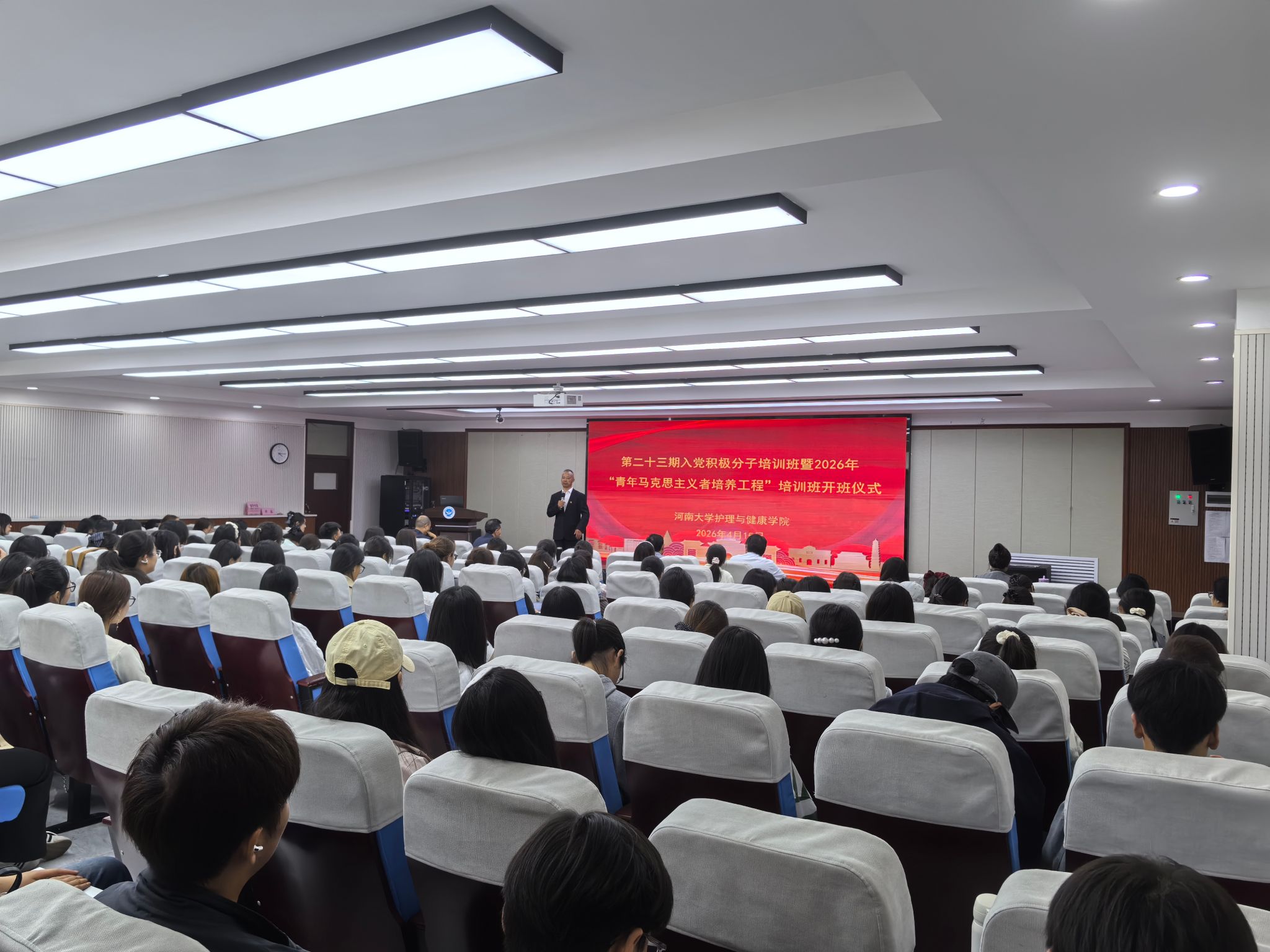 为引领青年大学生系统学习习近平新时代中国特色社会主义思想和党的基本知识,强化理想信念,厚植家国情怀,4月15日,护理与健康学院第23期入党积极分子培训班暨2026年“青年马克思主义者培养工程”培训班开班。学院全体党委委员、全体参训学员齐聚一堂,开启思想淬炼与理论提升的新征程。