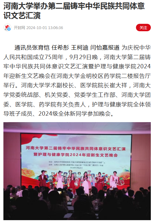 《开封网》河南大学举办第二届铸牢中华民族共同体意识文艺汇演