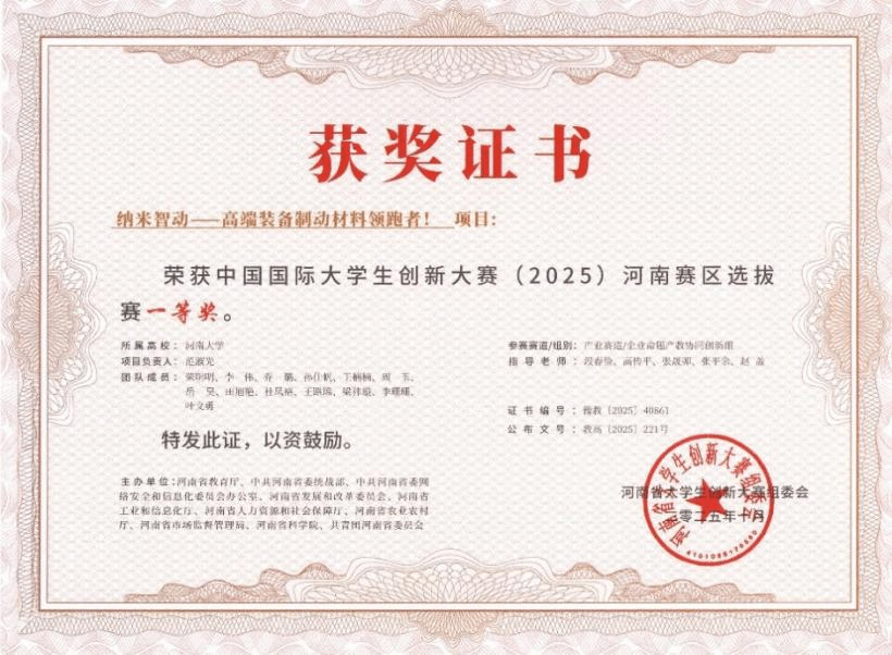 她的研究成果先后发表于Tribology International、Composites Science and Technology、Applied Surface Science 等国际知名学术期刊;申请中国发明专利 4 件,3 项论文成果荣获开封市自然科学优秀学术成果奖,用创新突破回应行业需求。在国际、全国学术会议的舞台上,她多次登台做报告,带着河大人的科研底气与学术自信,与海内外专家交流碰撞,展现河南青年学者的风采。