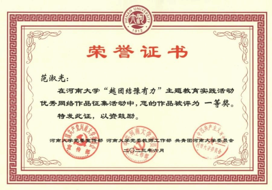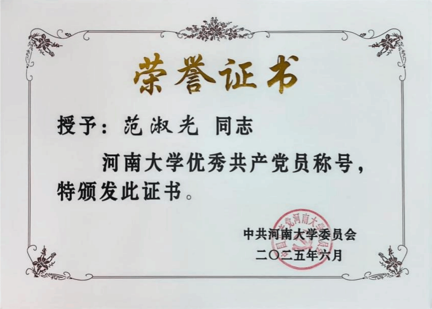 范淑光,女,中共党员,博士,硕士生导师,我院研究生辅导员、研究生第一党支部书记。2022年6月入职以来,范淑光始终秉持“星光不问赶路人,时光不负实干者”的信念,在学术殿堂深耕不辍,在育人一线春风化雨,在志愿服务中躬身力行,恪尽职守、笃行实干,用实际行动诠释着新时代青年的责任与担当。先后荣获河南大学优秀共产党员、职业规划大赛优秀指导教师、讲党史校史主题演讲比赛优秀指导教师等多项荣誉;所带班级班风优良、学风浓厚,多次获评校级优秀班集体。