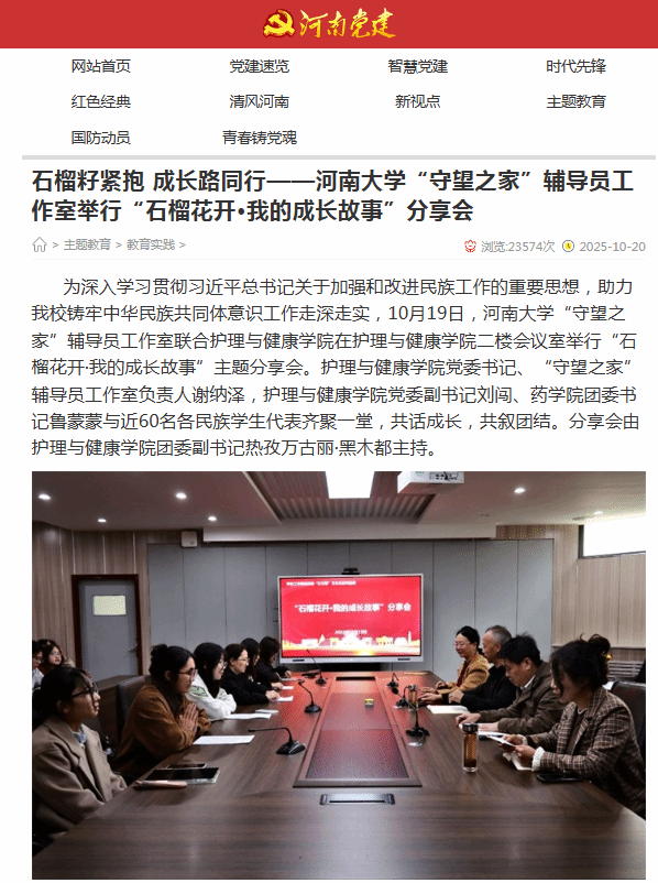 《河南党建》石榴籽紧抱 成长路同行——河南大学“守望之家”辅导员工作室举行“石榴花开·我的成长故事”分享会